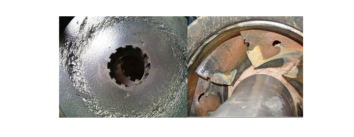 (1)造成材料破壞。汽蝕發(fā)生時(shí),由于機(jī)械剝蝕于化學(xué)腐蝕的共同作用,使材料受到破壞。由于汽蝕現(xiàn)象的復(fù)雜性,所以其形成機(jī)理直到現(xiàn)在仍在研究探討中。一般認(rèn)為水力沖擊引起的機(jī)械剝蝕,首先使材料破壞,而且是造成材料破壞的主要因素。 (2)產(chǎn)生噪聲和振動。汽蝕發(fā)生時(shí)汽泡的破裂和高速沖擊會引起嚴(yán)重的噪聲。另外,汽蝕過程本身是一種反復(fù)凝結(jié)、沖擊的過程,伴隨很大的脈動力。如果這些脈動力的頻率與設(shè)備的自然頻率接近,就會引起強(qiáng)烈的振動。如果汽蝕造成泵轉(zhuǎn)動部件材料破壞,必然影響轉(zhuǎn)子的靜平衡及動平衡,導(dǎo)致嚴(yán)重的機(jī)械振動。 (3)使離心泵的性能下降。泵汽蝕時(shí),會使其性能下降。泵內(nèi)氣泡較少時(shí),泵的性能曲線并無明顯的變化,這是汽蝕的初生階段。氣泡大量產(chǎn)生時(shí),流道被“堵塞”,這時(shí)汽蝕已到了發(fā)達(dá)階段。表現(xiàn)在泵的性能曲線上,出現(xiàn)明顯的變化,性能曲線發(fā)生顯著下降,出現(xiàn)了“斷裂”工況。但是不同的比轉(zhuǎn)速泵,其汽蝕性能曲線下降的情況是不同的。