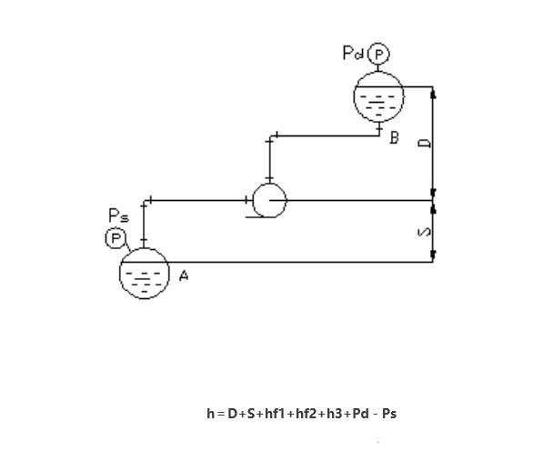 離心泵的揚(yáng)程計(jì)算是選擇泵的重要依據(jù),這是由管網(wǎng)系統(tǒng)的安裝和操作條件決定的。計(jì)算前應(yīng)首先繪制流程草圖,平、立面布置圖,計(jì)算出管線的長(zhǎng)度、管徑及管件型式和數(shù)量。