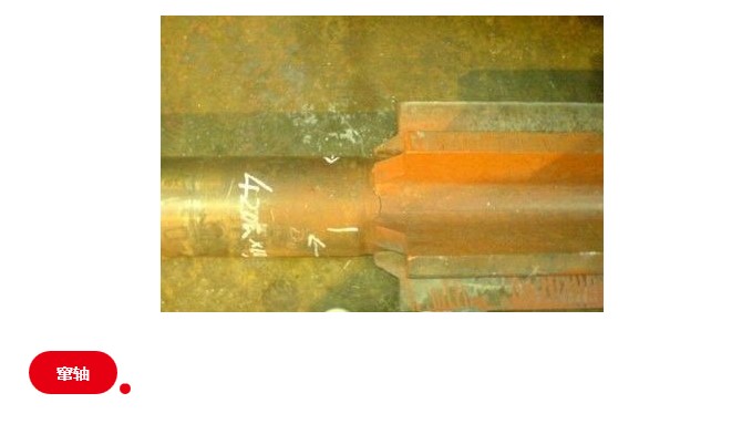 3、幅板軸斷裂。排除安裝因素外,幅板軸常會在幅板焊接位置出現(xiàn)不規(guī)則裂紋,大多數(shù)電機生產(chǎn)廠家通過退火工藝、并在幅板與主軸連接的兩端,通過加工應(yīng)力槽的方式解決該類軸的斷軸問題。