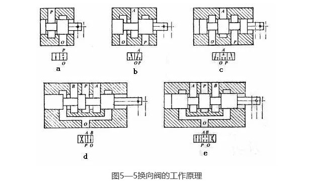 換向閥的作用是利用閥芯和閥體的相對運(yùn)動(dòng)來接通、關(guān)閉油路或變換油液通向執(zhí)行元件的流動(dòng)方向,以使執(zhí)行元件啟動(dòng)、停止或變換運(yùn)動(dòng)方向。
