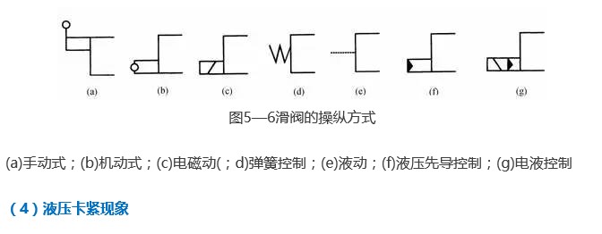 由于滑閥式換向閥閥芯與閥體孔的加工誤差或裝配時(shí)中心線不重合,進(jìn)入滑閥配合間隙中的壓力油將對閥芯產(chǎn)生不平衡的徑向力,而使閥芯的偏心加大,最終使閥芯緊貼在孔壁上,使得操縱滑閥運(yùn)動(dòng)發(fā)生困難,甚至卡死,這種現(xiàn)象稱作液壓卡緊。下圖5—7是液壓卡緊原理圖。
