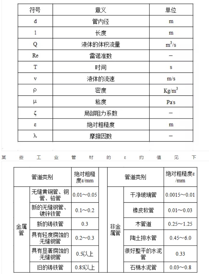 計算式中各參數(shù)符號的意義某些工業(yè)管材的ε約值見下表 管網(wǎng)局部阻力計算 常用管件和閥件底局部阻力系數(shù)ζ