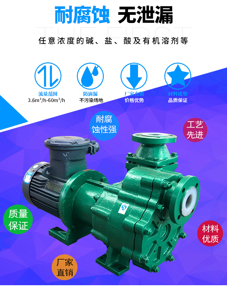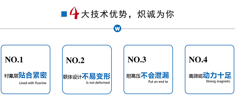 ZMD襯氟自吸磁力泵是我公司新一代耐腐蝕自吸磁力泵,它不但集氟塑料磁力泵的優(yōu)點,而且具有自吸功能、無泄漏,這是以往的所有氟塑料磁力泵不能達到的,因此,該系列泵一推出就受到了廣大用戶的歡迎。該系列泵可廣泛適用于化工、有色金屬冶煉、農藥、制酸制堿、造紙、酸洗工藝、稀土分離、電鍍、電子、化成箔、卸酸堿等行業(yè)或工作流程,是目前磁力泵品種中結構新穎的產品之一,且高效節(jié)能、安全實用。