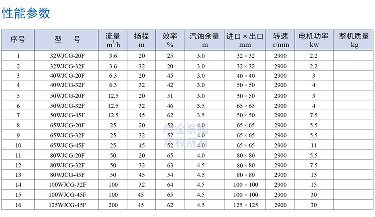 皖金泵閥襯氟磁力管道泵主要參數(shù):